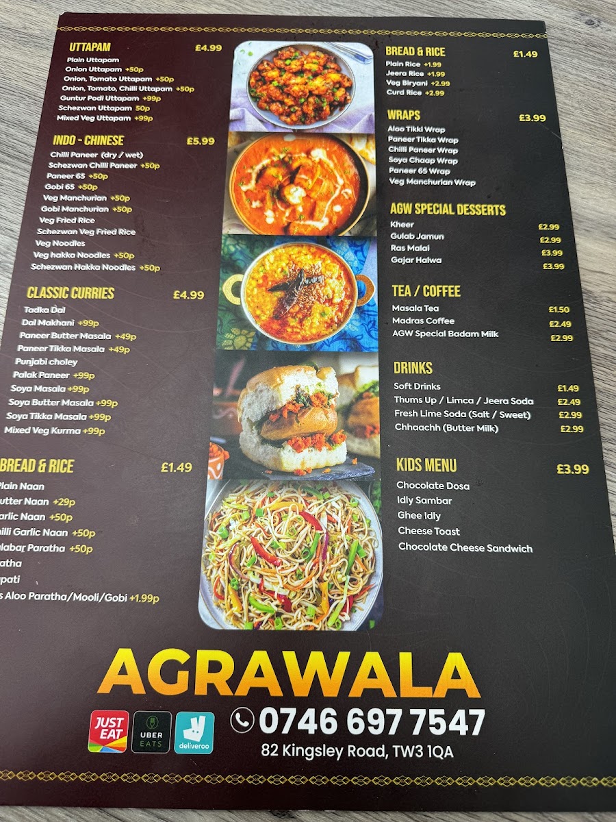 Introducing the menu at Agrawala, an Indian culinary gem located in Hounslow, invites you to explore a rich tapestry of classic flavors and bold innovations. The menu brilliantly balances tradition and creativity, featuring beloved curries like the creamy Paneer Butter Masala and hearty Dal Makhani, alongside lesser-known gems such as Soya Tikka Masala and Mixed Veg Kurma. Each dish is crafted with authentic spices that deliver depth without overwhelming the palate.